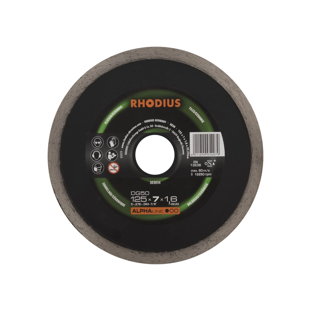 Diamantdoorslijpschijf met gesloten snijrand ten behoeve van het doorslijpen van keramische tegels.